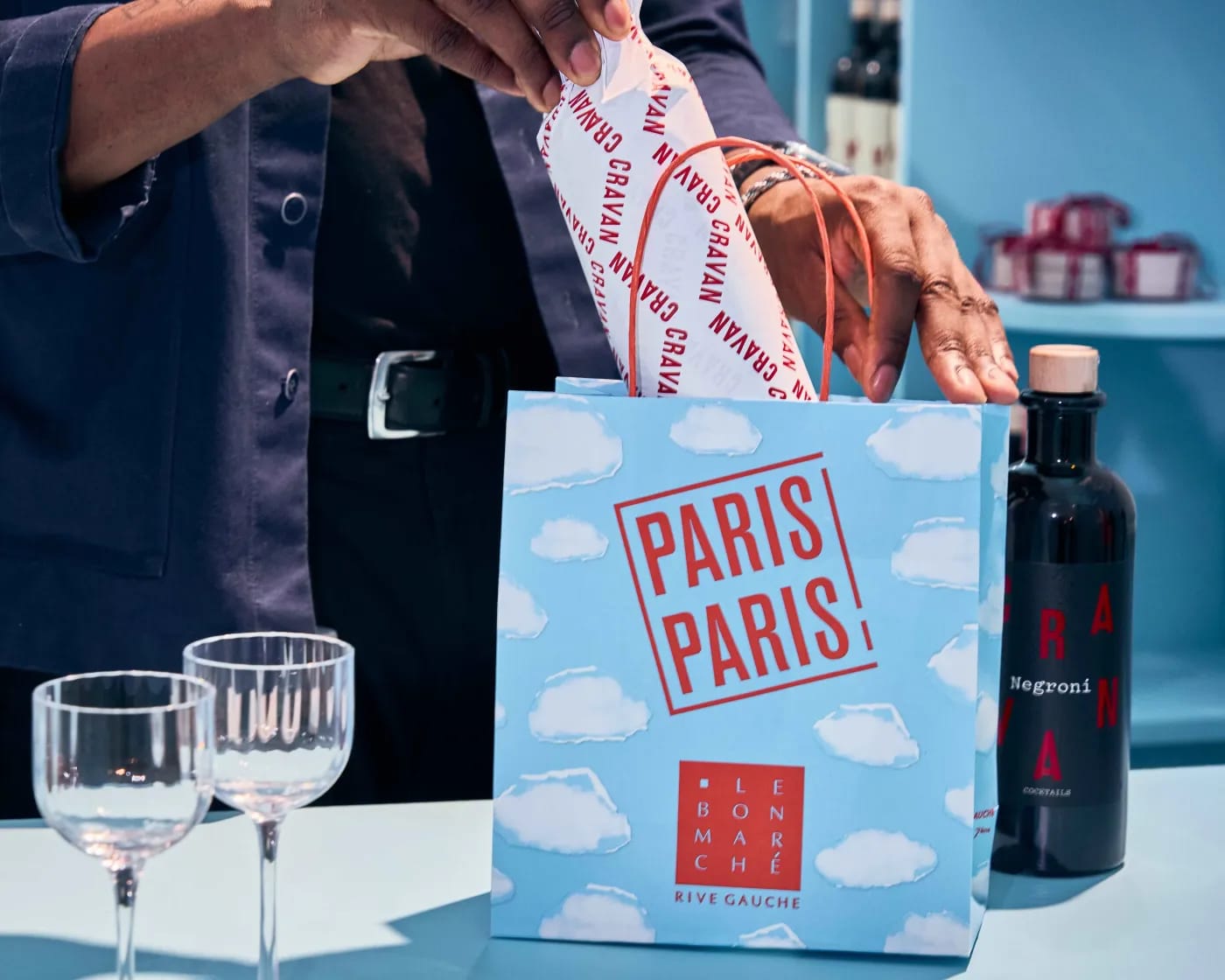 CRAVAN, le bar à cocktails protéiforme et cultivé de Saint-Germain-des-Prés, s’installe au 2ème étage du Bon Marché dans le cadre de l’exposition « Paris Paris » et y présente tout son savoir-faire. À travers cet espace dédié à l’univers CRAVAN il sera possible de retrouver une offre inédite et innovante de la Maison : des cocktails en bouteille prêts à servir chez vous et qui seront à déguster sur place : Boulevardier, Negroni, Rivoli et Vavin, fruits du travail et échange de savoir-faire entre Franck Audoux et les Maîtres distillateurs et assembleurs des Maisons de spiritueux du groupe Moët Hennessy. Deux nouveaux cocktails viennent aussi faire leur apparition en exclusivité au Bon Marché : Luco et Old Fashioned, à découvrir et à déguster également tous les jours pendant toute la durée du pop-up.